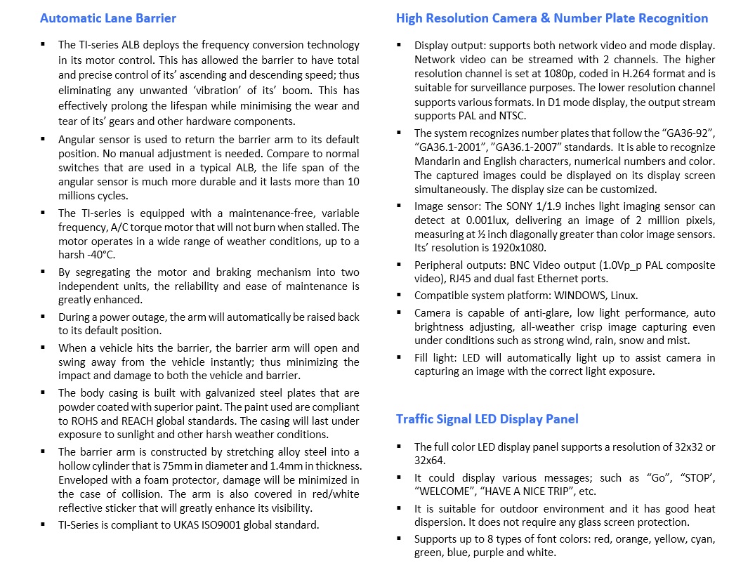 TI-Series Intelligent and Integrated Automatic Lane Barrier