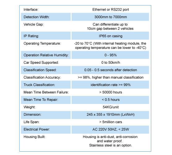 vehicle accurately in less than 0.5 second. The system is capable of classifying a vehicle that is travelling at up to 50